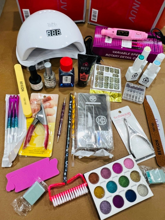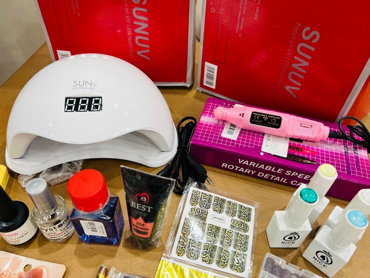 پک لوازم وسایل کاشت ناخن با لاک ژل اقتصادی پودر اموزش رایگان